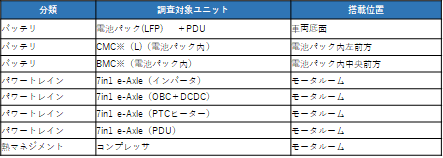 - 高電圧電装品個別ユニット(下表)での搭載基板、搭載部品情報のレポート