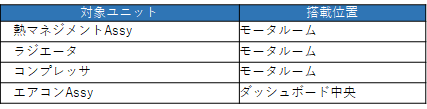 | 熱マネジメントAssy | ラジエータ | コンプレッサ | エアコンAssy |