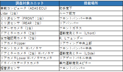 • ADAS関連個別ユニットの搭載基板写真、搭載主要部品メーカー ※ユニットはX線での内部確認