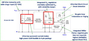 - シンプルな4ピンデバイス。パッケージを個別のGaNデバイスのように扱うことができ、追加のVCCピンは不要